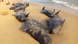 India.- Unas cincuenta ballenas comenzaron a varar el lunes a lo largo de 15 km de costa, cerca de Tiruchendur, en el estado meridional de Tamil Nadu.