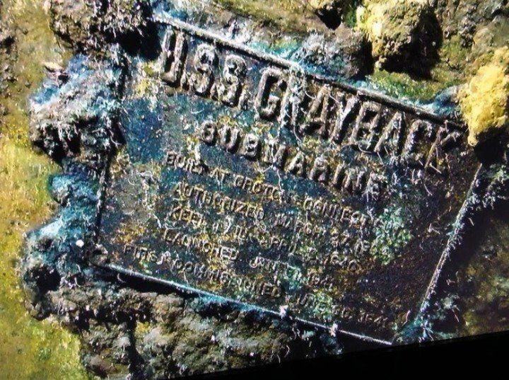 La placa del U.S.S. Grayback, hundido en el fondo del mar. (Tim Taylor-Lost 52 Project)