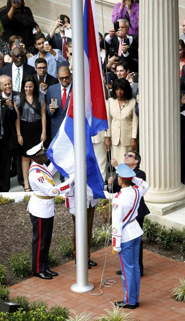 La bandera cubana fue izada ayer en la embajada de La Habana en Washington por primera vez en 54 años luego de que EEUU y Cuba restablecieron formalmente sus relaciones, abriendo un nuevo capítulo entre ambos ex enemigos de la Guerra Fría.