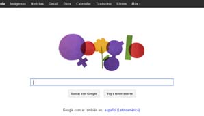 El logotipo de Google ha dejado de lado por un día su tipografía y sus colores rojo, amarillo, verde y azul para dar paso a nuevos colores como el morado, protagonista del ‘doodle’. Este color comparte protagonismo con el símbolo de Venus que sustituye a la primera g de Google y una flor, que sustituye a una de las oes. Con este diseño, la compañía celebra este 8 de marzo.