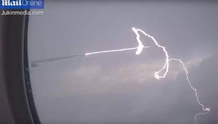 El relámpago alcanzó al avión que se dirigía desde Abu Dabi hacia París. Uno de los pasajeros logró captar el instante en que se produjo el impacto.