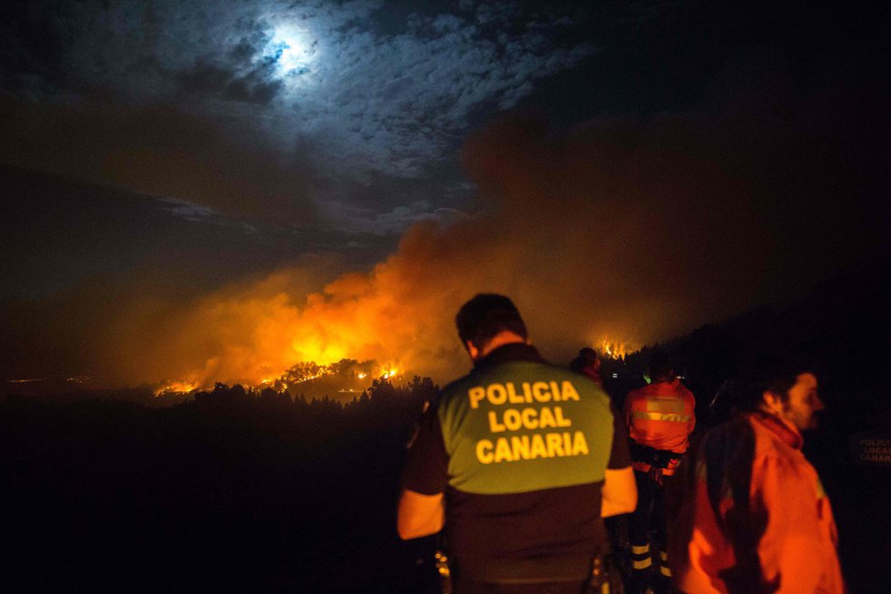 Un gran incendio forestal sin control, el tercero importante en una semana, quemó ya entre 1.500 y 1.700 hectáreas en el norte de la isla atlántica española de Gran Canaria y obligó a evacuar unas 4.000 personas de cuarenta núcleos de población.  El fuego, "muy virulento", ha causado ya "un desastre" medioambiental y avanza hacia el pinar de Tamadaba, un bosque autóctono declarado Reserva de la Biosfera, según advirtió este domingo el presidente regional de las islas Canarias, Ángel Víctor Torres.