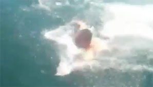 Estados Unidos, 8 de junio.- Lo llamativo es que, una vez en el agua, el valiente vuelve a su embarcación nadando rápidamente para escapar de la criatura, pero el predador ni siquiera le presta atención y se aleja tranquilamente.