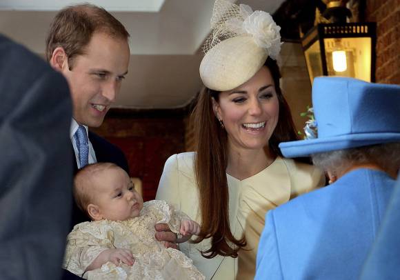 El príncipe Jorge, hijo de los duques de Cambridge, fue bautizado ayer en el palacio de St. James’s, en Londres, en una ceremonia íntima que reunió a Isabel II y a tres futuros monarcas: Carlos, Guillermo y Jorge. El tercero en la línea de sucesión al trono británico, recibió las aguas bautismales del río Jordán del arzobispo de Canterbury, Justin Welby, primado de la Iglesia de Inglaterra, ante la mirada de apenas 22 invitados, incluidos sus siete padrinos. Los primeros en llegar al templo fueron los padrinos, entre ellos Zara Phillips, nieta de Isabel II.