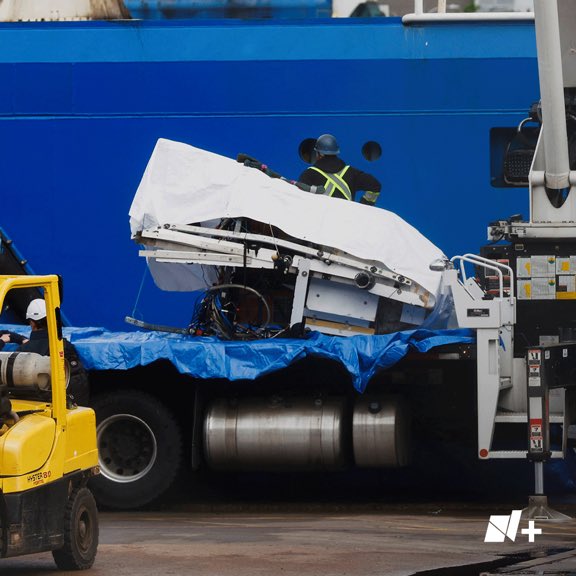 Imágenes captadas por la radiotelevisión pública canadiense CBC muestran las grúas del Horizon Arctic descargando a primera hora del miércoles grandes piezas del Titan en el puerto de San Juan de Terranova.