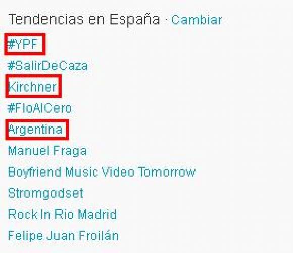 San Juan, 16 de abril.- Tras el anuncio de expropiación de YPF por parte del Gobierno Nacional Twitter estalló, no sólo en Argentina sino también en España.