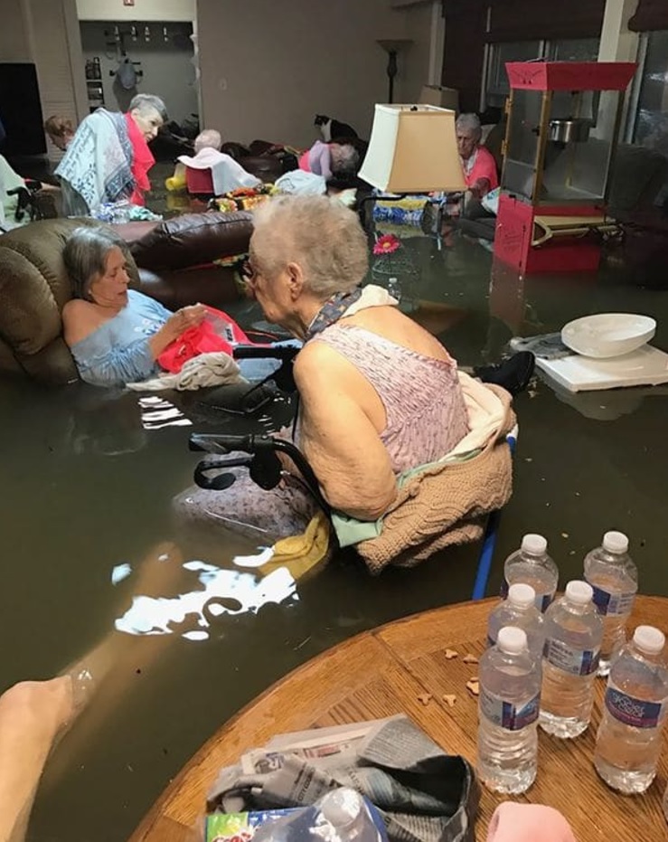 "El geriátrico La Vita Bella en Dickinson, Texas, está casi bajo el agua. Necesitan ayuda tan pronto como sea posible", escribió en su cuenta de Twitter Timothy J. McIntosh, escritor cuya suegra vive en ese hogar de la tercera edad. Junto a la leyenda, una fotografía. Conmovedora. Desesperante.