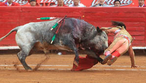 México, 29 de diciembre.- Un torera mexicana sufrió dos cornadas y otras cuatro personas resultaron heridas, una de ellas de gravedad, cuando un toro saltó fuera del ruedo, en la décima jornada de la Plaza de Toros de México de este domingo, informaron autoridades de ese centro taurino.