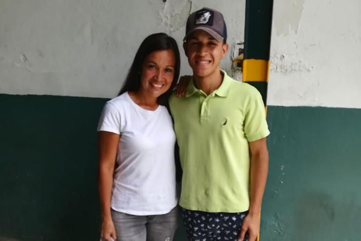 "Nos estaban lanzando gases desde la base aérea de La Carlota [donde estaban los militares leales al chavismo]. Una bomba lacrimógena cayó muy cerca de mí, a mis pies. La agarré y la lancé lejos. Ahí me di cuenta que era la primera bomba que yo devolvía y comencé a celebrarlo con mi hijo, que estaba a mi lado. Me dio emoción. Todo el mundo se reía. El guardia me dijo ‘¡chócala!’ y justo cuando la choqué me tomaron la foto", explicó a Anais Serrano, caraqueña de 37 años y madre de Carlos, de 21. Esta historia no se entiende sin madre e hijo, sin la lucha de uno y el amor de la otra.