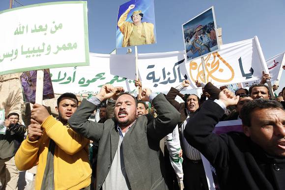 Estas protestas fueron motorizadas por las revueltas populares de Egipto y Túnez, que acabaron con las autocracias que gobernaban ambos países. Pese al "clima de terror" que reina, entre 20.000 y 30.000 personas salieron ayer a las calles de Bengasi en Libia para exigir la caída del régimen del líder Kadafi. Otros testigos señalaron que "cascos amarillos", como se les llama a los considerados mercenarios de diferentes nacionalidades africanas, han perpetrado "un genocidio" en la ciudad Derna, también en el este del país, donde había cadáveres calcinados en la ruta que va al aeropuerto.