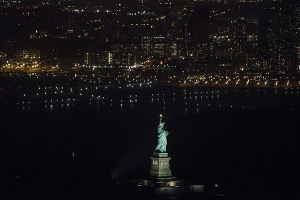 La estatua de la mujer que representa la libertad solo tenía encendida su antorcha y otras cuantas luces. Sin embargo, el resto estaba oscuro.