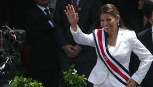 En un discurso de tono moderado, sin frases altisonantes, Chinchilla se presentó a los costarricenses como una líder conciliadora cuya mayor promesa fue ‘servirles con humildad, honestidad y firmeza‘, en presencia de nueve jefes de Estado y el Príncipe de Asturias.