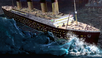 Cuando el primer oficial, William Murdoch, avistó el iceberg a dos millas de distancia, dio la orden de "fuerte a estribor", fue malinterpretado por su subordinado Robert Hitchins, que giró el buque a la derecha en lugar de a la izquierda. Aunque casi inmediatamente se le advirtió del error y se le dijo que lo corrigiera, era ya demasiado tarde.