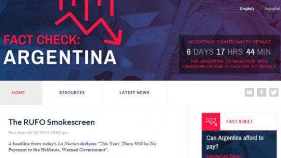 En su página web factcheckargentina.org publica un reloj con una cuenta regresiva que indica la cantidad de días que tiene el país "para negociar con los fondos buitre o elegir entrar en default".