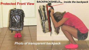 BackPackShields es otra de las populares -si bien con mochilas menos vistosas- compañías que entraron en el negocio de los bolsos-escudo tras los varios atentados que se sucedieron en los EEUU en la última década, comenzando con la matanza de Columbine en 1999 en el que 13 estudiantes fueron asesinados.