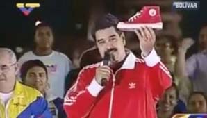 Venezuela, 16 de septiembre.- El presidente Nicolás Maduro presentó ayer las “botas de Chávez”, en alusión al fallecido presidente. Las “botas” en cuestión eran una zapatillas de lona roja acordonadas que tienen una estética similiar a una conocida marca estadounidense.