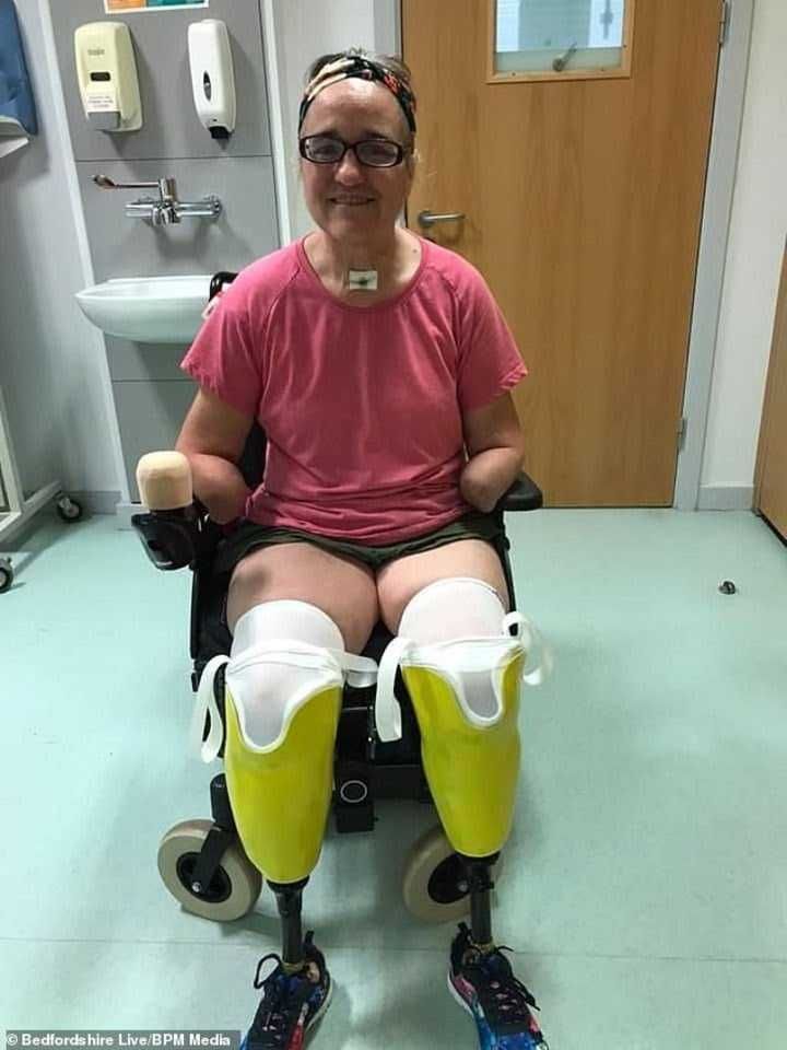 Si bien los médicos no creían que podría salir adelante, y en dos oportunidades le aconsejaron a sus parientes que se despidan de ella, la mujer reaccionó. Cuando salió del coma, descubrió que sus manos y pies no estaban, ya que habían sido amputados por la sepsis.