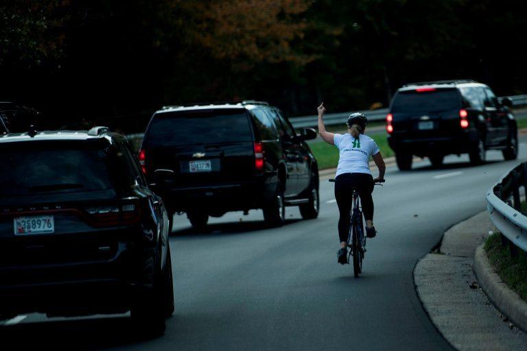 Juli Briskman no lo pensó dos veces en mostrar el dedo medio a Donald Trump, cuando la caravana presidencial la adelantó mientras ella circulaba por el carril bicicerca de uno de los campos de golf del mandatario.