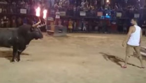 Le prendieron fuego a los cuernos de un toro y se vengó
