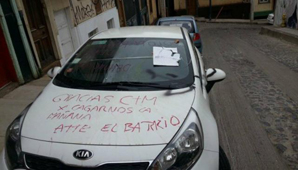 "Gracias CTM (abreviatura de ‘C… de Tu Madre’) por cagarnos la mañana. Atte. El Barrio”, le escribieron en el capó del auto. Además, se lo rayaron y le dejaron papeles con mensajes nada amigables.