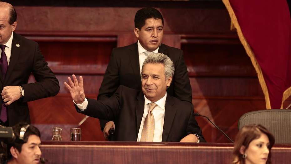 Moreno se acreditó el triunfo en un balotaje el 2 de abril como candidato del partido de gobierno Alianza País al imponerse al ex banquero de derecha Guillermo Lasso.
