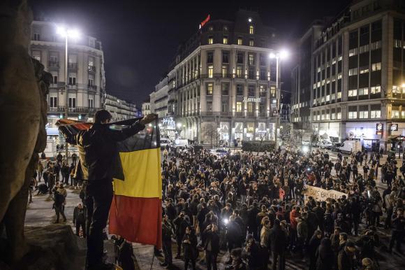 Con Bélgica paralizada por los atentados, los ciudadanos de la capital de la Unión Europea abarrotaron la céntrica plaza de la Bolsa, a unas 20 cuadras de la estación que fue escenario de una de las explosiones, con mensajes de paz, velas y flores en señal de luto y solidaridad con las víctimas.