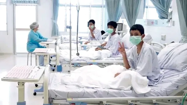Los 12 chicos y su entrenador rescatados tras pasar más de dos semanas atrapados en una cueva del norte de Tailandia recibieron este miércoles el alta en el hospital de Prachanukroh de Chiang Rai y, apenas salieron, le hablaron al mundo.