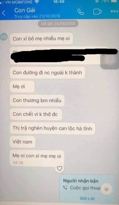 “Lo siento, mamá. Mi viaje al extranjero no ha tenido éxito. Mamá, te quiero mucho. Me muero porque no puedo respirar”, decía el mensaje.