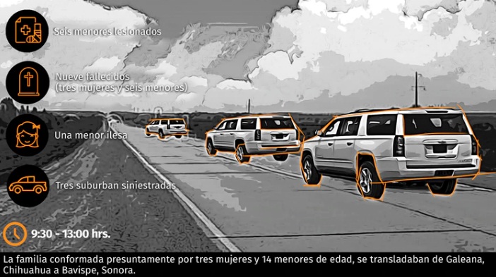El número de occisos por este hecho fue de nueve personas —seis menores y tres adultos—, Julián LeBarón, pariente de las víctimas, advirtió que en la zona pudieron haberlas confundido con algún grupo criminal y pidió ayuda al gobierno federal para dar con los desaparecidos.