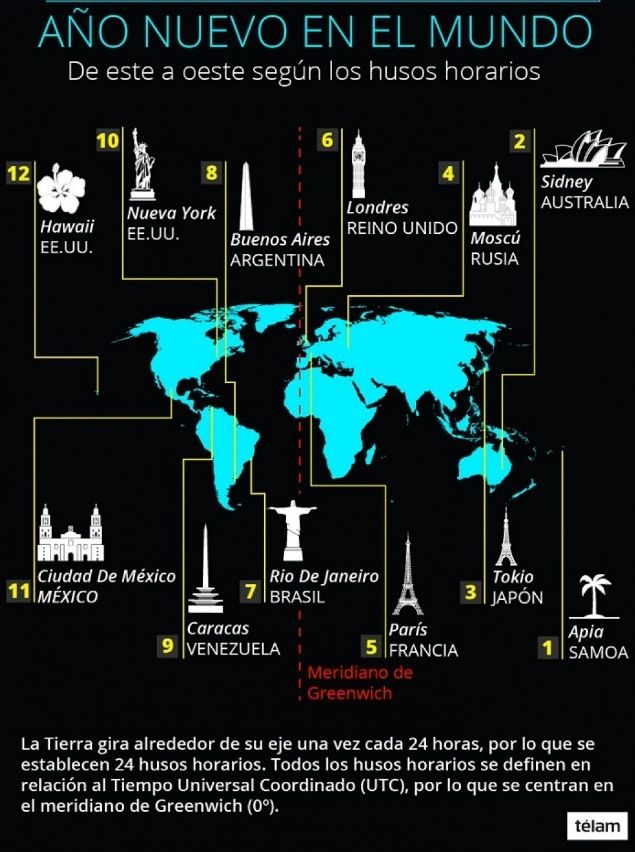 Los ciudadanos de Kiribati y Samoa fueron los primeros. Estos archipiélagos, cuya población combinada supera los 30 mil habitantes, escucharon las doce campanadas ante un cielo iluminado de fuegos artificiales. Al poco tiempo, los próximos fueron los habitantes de Nueva Zelanda, que rodearon el Sky Tower -un edificio de 328 metros de altura- para disfrutar de un show único en el planeta de luces láser y pirotecnia al ritmo de la música.