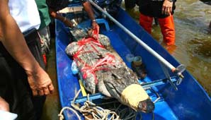 Equipos especiales del Departamento de Pesca atendieron numerosos avisos sobre reptiles amenazantes, como un cocodrilo de un metro que Anchalee Wannawet encontró una mañana afuera de una letrina. El animal estaba echado y tenía abiertas las mandíbulas.