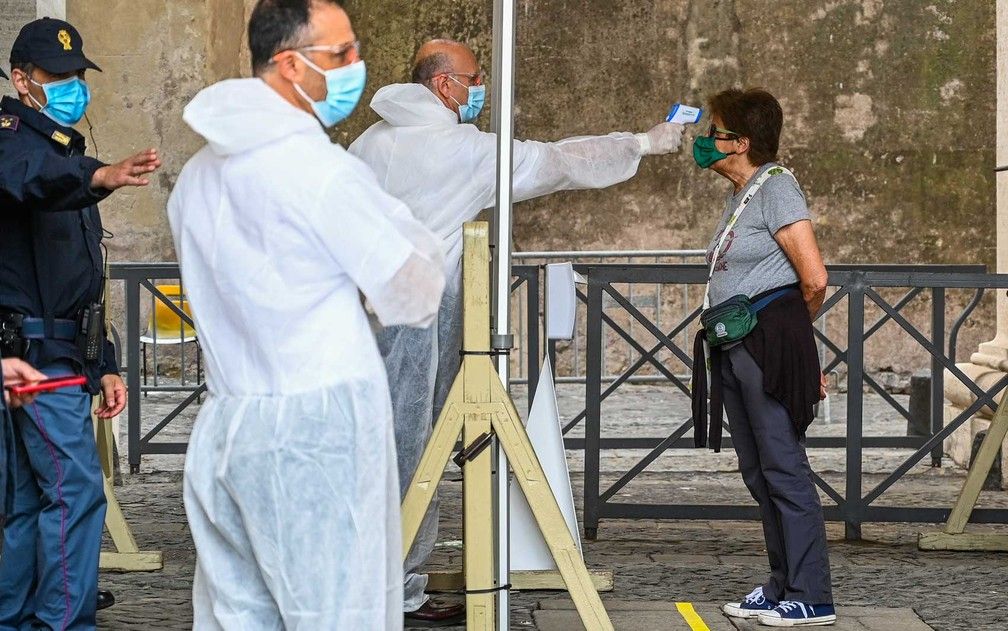 En los ingresos, personal sanitario con termoescáneres tomaba la temperatura de los visitantes para evitar la entrada de los que tengan más