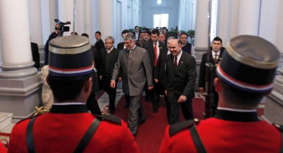 Además, pidió honrar el uso de la energía que le sobra a Paraguay ‘para industrializar el país‘, en lugar de cederla a Argentina y Brasil. Tras su juramento y discurso en la sesión legislativa, Franco se trasladó caminando al cercano Palacio de Gobierno para ocupar su nuevo despacho.