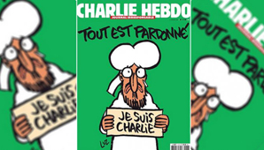 La tapa, que anticipa, Libération, lejos de ser cauta, vuelve a la carga con Mahoma con lágrimas como la única imagen. Pero en este caso, en lugar de burlarse del líder como lo hicieron en ocasiones anteriores -lo que despertó la ira de los musulmanes extremistas y terroristas-, ahora apela al profeta para lanzar un claro mensaje: el líder del islam no avala la masacre perpetrada. Con el emblema del repudio, Mahoma sostiene el popular cartel: "Je Suis Charlie", y un mensaje cargado de ironía: "Todo ha sido perdonado".