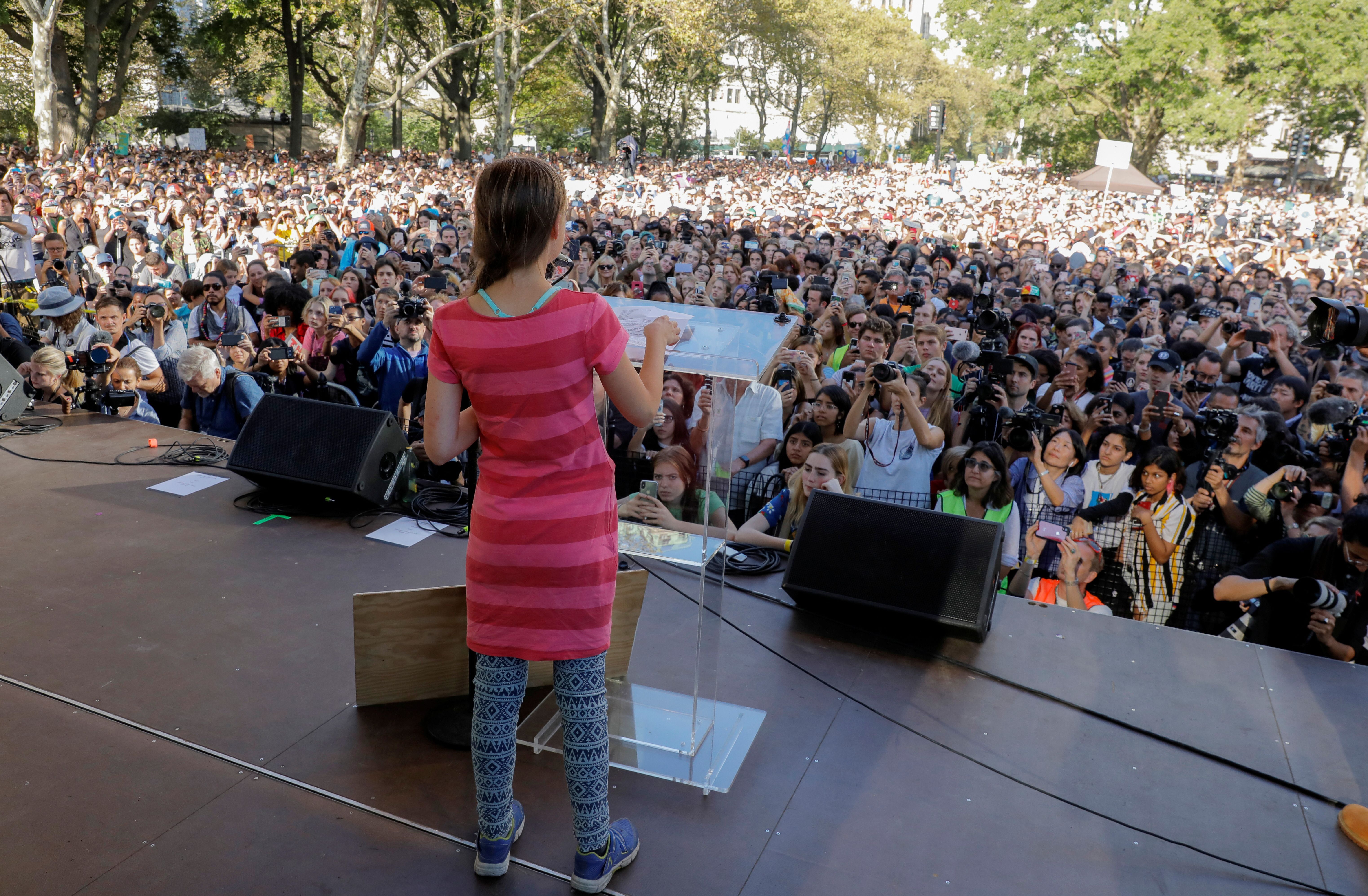 Las marchas contra el cambio climático empezaron en las islas de Oceanía y el Pacífico, y continuaron en Europa, África, Oriente Medio y América, con multitudes en Londres, París, Santiago de Chile y Ciudad de México. Thunberg, que ganó notoriedad tras cruzar el Atlántico en un barco libre de emisiones, estuvo en Nueva York para encabezar una manifestación masiva en el Bajo Manhattan antes de la cumbre del clima en la sede de las Naciones Unidas. La joven activista sueca Greta Thunberg inició las huelgas escolares los viernes para pedir más acciones contra el cambio climático.