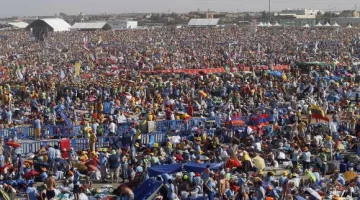 Los peregrinos que seguían llegando se sumaban a los muchos miles que ya se trasladaron a este lugar desde primeras horas de la mañana provistos de sus mochilas, sacos de dormir u otros artículos para poder pasar la noche en el aeródromo, con el fin de asistir hoy a la misa.