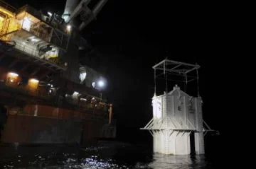 La compañía había planeado trasladar el crudo desde esa caja contenedora hacia un barco petrolero en la superficie mediante una tubería instalada en la parte superior en forma de cúpula de la estructura rectangular.