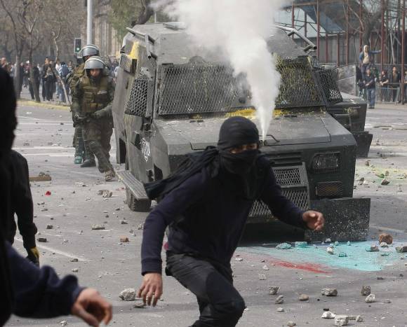 Los manifestantes se congregaron frente a la sede de la Universidad de Santiago y recorrieron luego un tramo de la Alameda, el principal eje de la ciudad, para terminar con un concierto en el sector de Blanco Encalada. Al término del concierto, grupos aislados de encapuchados lanzaron piedras y palos a la policía, que había organizado un amplio dispositivo para resguardar el orden en las calles. Carabineros, reprimieron los ataques con carros lanza aguas y aprovechó para dispersar a muchos manifestantes que se encontraban pacíficamente en las calles aledañas.