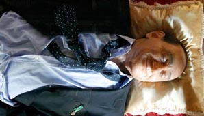 “El sueño de los italianos” es el título de esta peculiar obra, que se inspira en el mausoleo de los dirigentes políticos comunistas Lenin y Mao, y que, según los autores, pretende invitar al público a una reflexión concienzuda de la “era berlusconiana”.