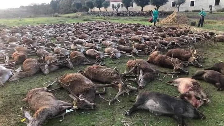 La polémica saltó después de que algunos de los 16 cazadores españoles que participaron en la cacería difundieron imágenes posando con los cadáveres de unos 540 animales, en su mayoría venados y jabalíes. Según medios locales, la montería ocurrió en la finca Torre de Bela de Azambuja, a unos 40 kilómetros de Lisboa.