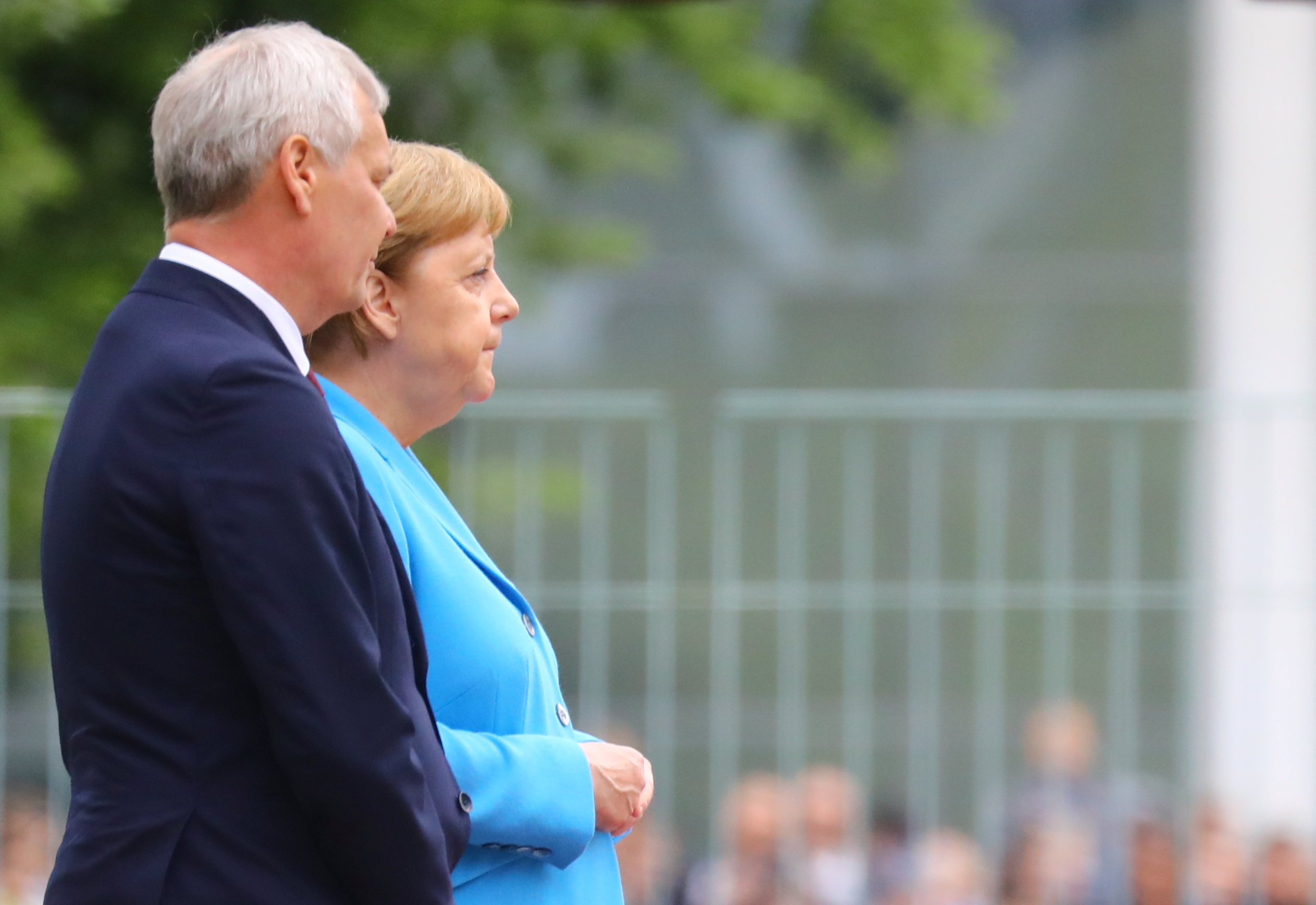 El cuerpo de la referente de la Unión Demócrata Cristiana (CDU) tembló visiblemente, aunque con menor intensidad que en otras ocasiones, durante una ceremonia con honores militares junto al primer ministro de Finlandia, Antti Rinne, en el exterior de la cancillería, en Berlín.
