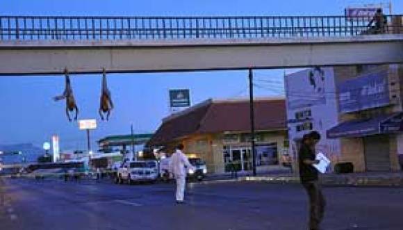 México, 6 de noviembre.- Uno de los cadáveres estaba desnudo, presentaba huellas de tortura y una gran herida en el abdomen, al parecer de una autopsia artesanal, indicaron las mismas fuentes. Los otros dos cuerpos también habían sido torturados, por lo que las autoridades locales creen que pudieron haber sido mantenidos algún tiempo dentro de un frigorífico.