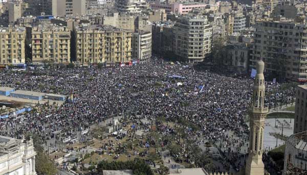 Según la cadena de televisión Al Yazira, el número de manifestantes reunidos en Tahrir es sensiblemente superior al de los días anteriores de protesta.