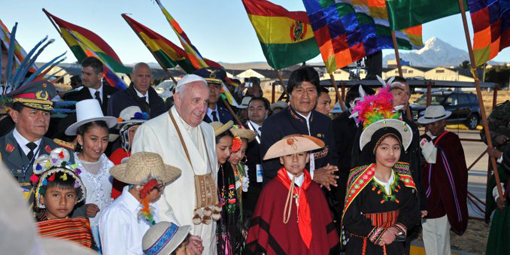 El Papa fue recibido con música de la Orquesta de San José de Chiquitos, uno de los pueblos de la Chiquitania. Esa zona boliviana tiene una gran riqueza patrimonial barroca en sus iglesias que atestigua la labor evangelizadora desplegada allí por diversas órdenes católicas y muy especialmente los jesuitas, compañía a la que pertenece Francisco.