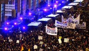 En la capital española, donde medios locales hablaron de decenas de miles de participantes, se convocaron cuatro marchas paralelas que pasadas las 18:00 horas comenzaron a confluir en la céntrica Plaza de Neptuno, en las inmediaciones del Congreso de los Diputados (Cámara Baja), donde les esperaba un fuerte despliegue policial.