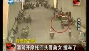 Un motociclista chino tuvo una distracción momentánea debido a los atributos de una joven y provocó un insólito accidente. Mirá el video.
