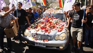 Las banderas arcoíris del colectivo homosexual, los carteles reclamando justicia y las fotografías de Zamudio acompañaron el féretro hasta las inmediaciones del Cementerio General de Santiago de Chile.