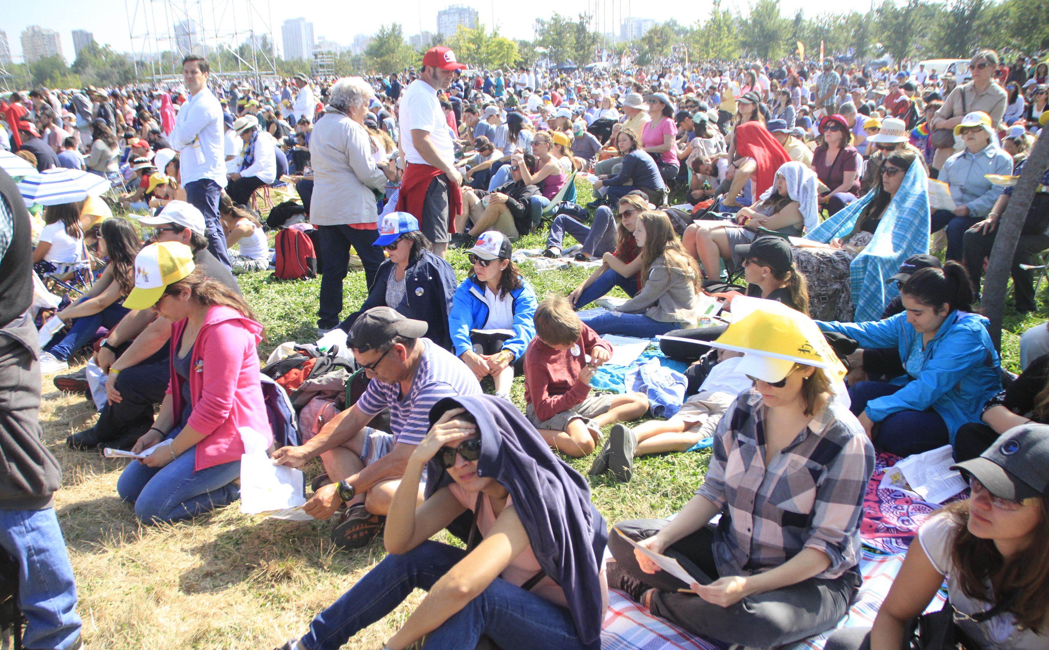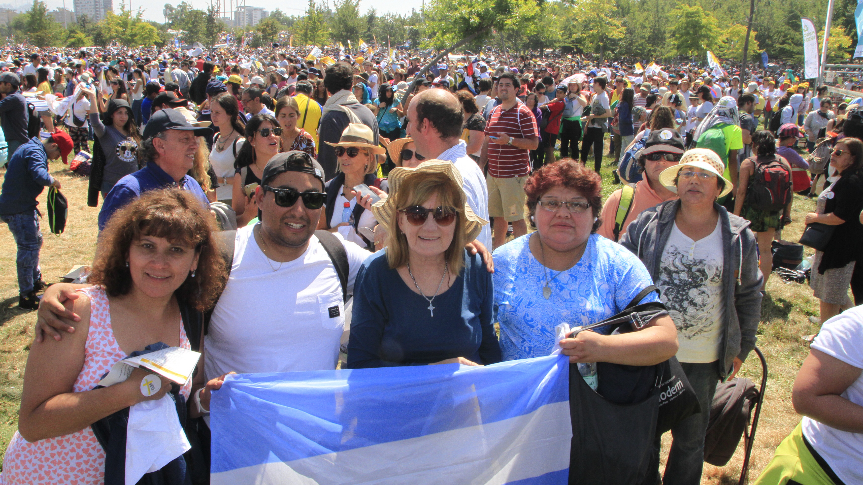 En plena madrugada, las banderas amarillas y blancas, las canciones religiosas y la euforia por ver al papa Francisco hicieron que todos mantuvieran encendido el entusiasmo. Esto, a pesar de que los fieles no durmieron y aguantaron el frío de la noche y el calor insoportable de la mañana. Así, firmes, sin moverse de su ubicación y hasta comiendo poco, los peregrinos disfrutaron ayer de la misa del papa Francisco en el Parque O”Higgins, un espacio verde de unas 75 hectáreas.