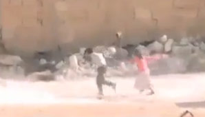 Refleja el dramático momento en que un menor finge estar muerto para ir a rescatar a una niña aun más pequeña en medio de los disparos de supuestos francotiradores al servicio del régimen de Bashar Al Assad, según afirma el usuario que publica las imágenes.