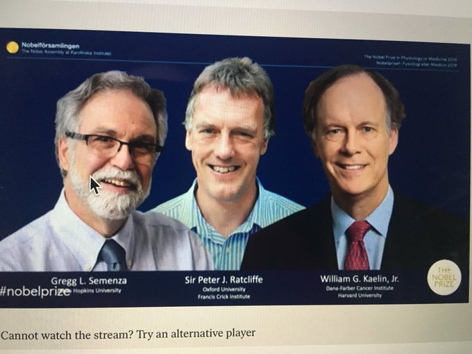 El premio Nobel de Medicina 2019 fue otorgado a los estadounidenses William Kaelin, Gregg Semenza y el británico Sir Peter Ratcliffe “por sus descubrimientos sobre cómo sienten las células y se adaptan al oxígeno disponible”.